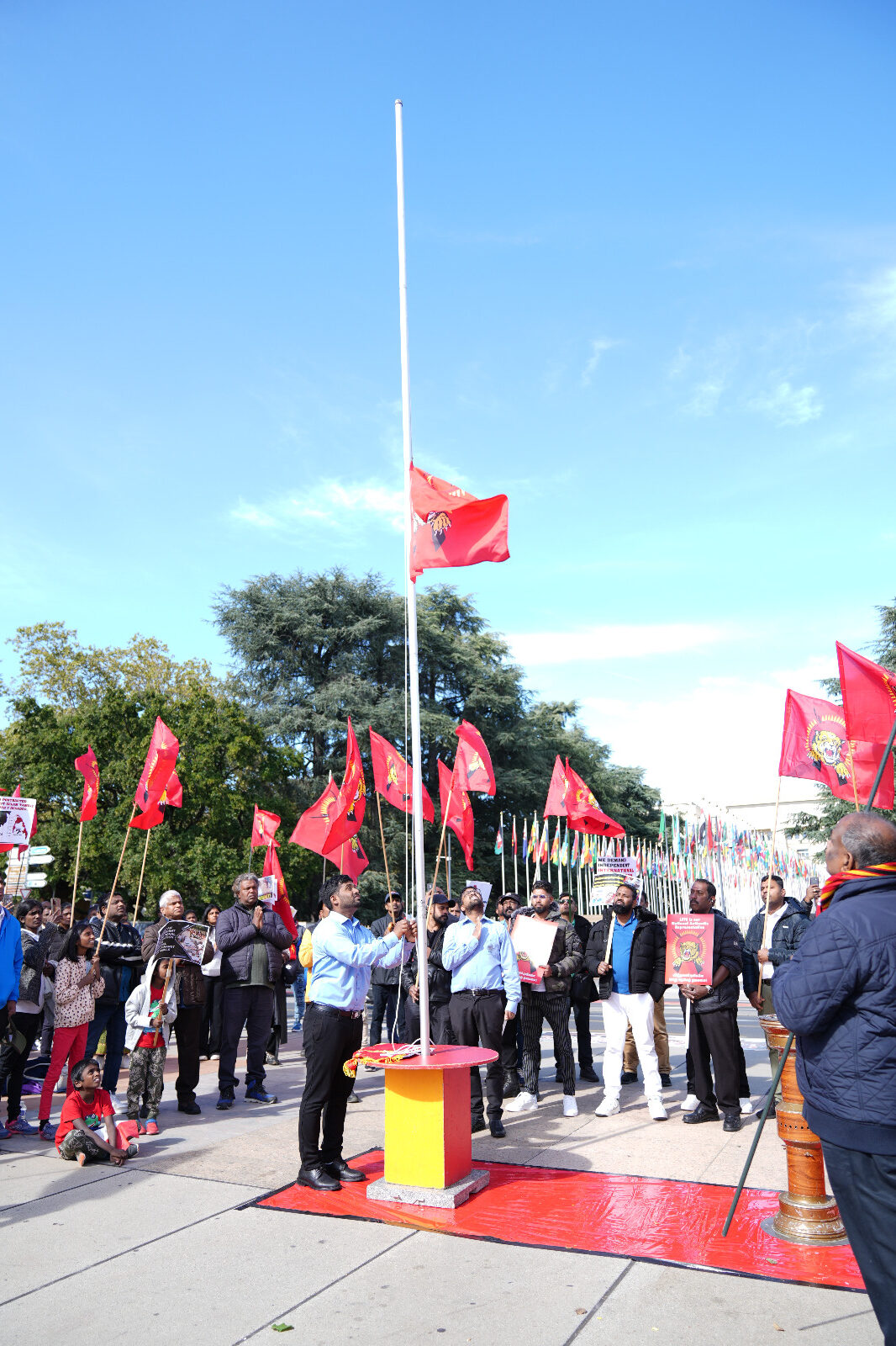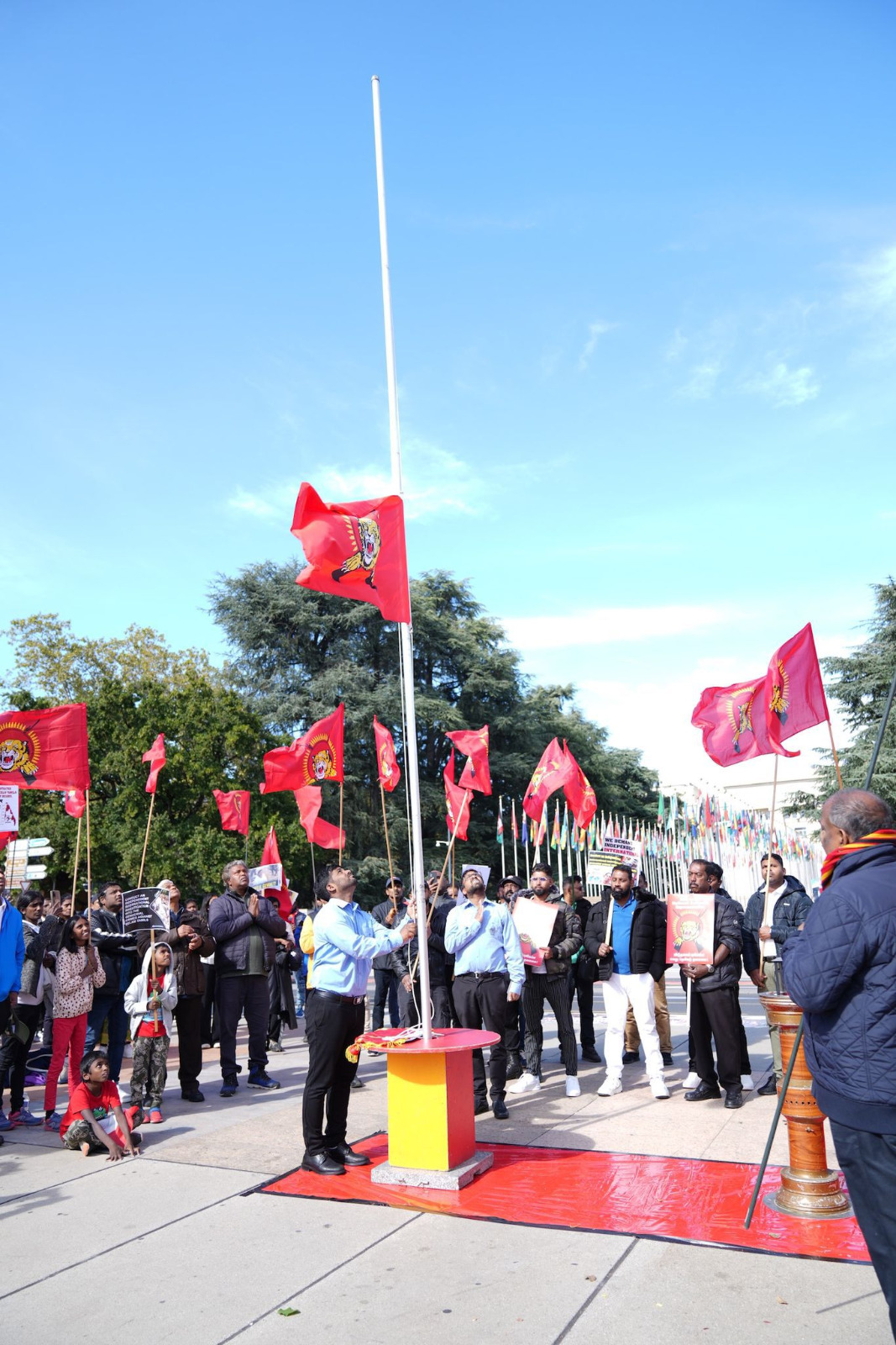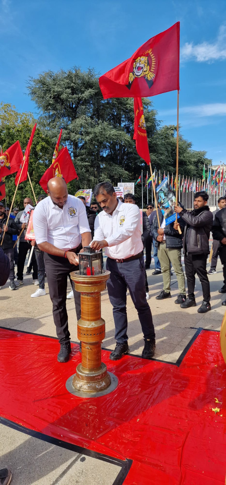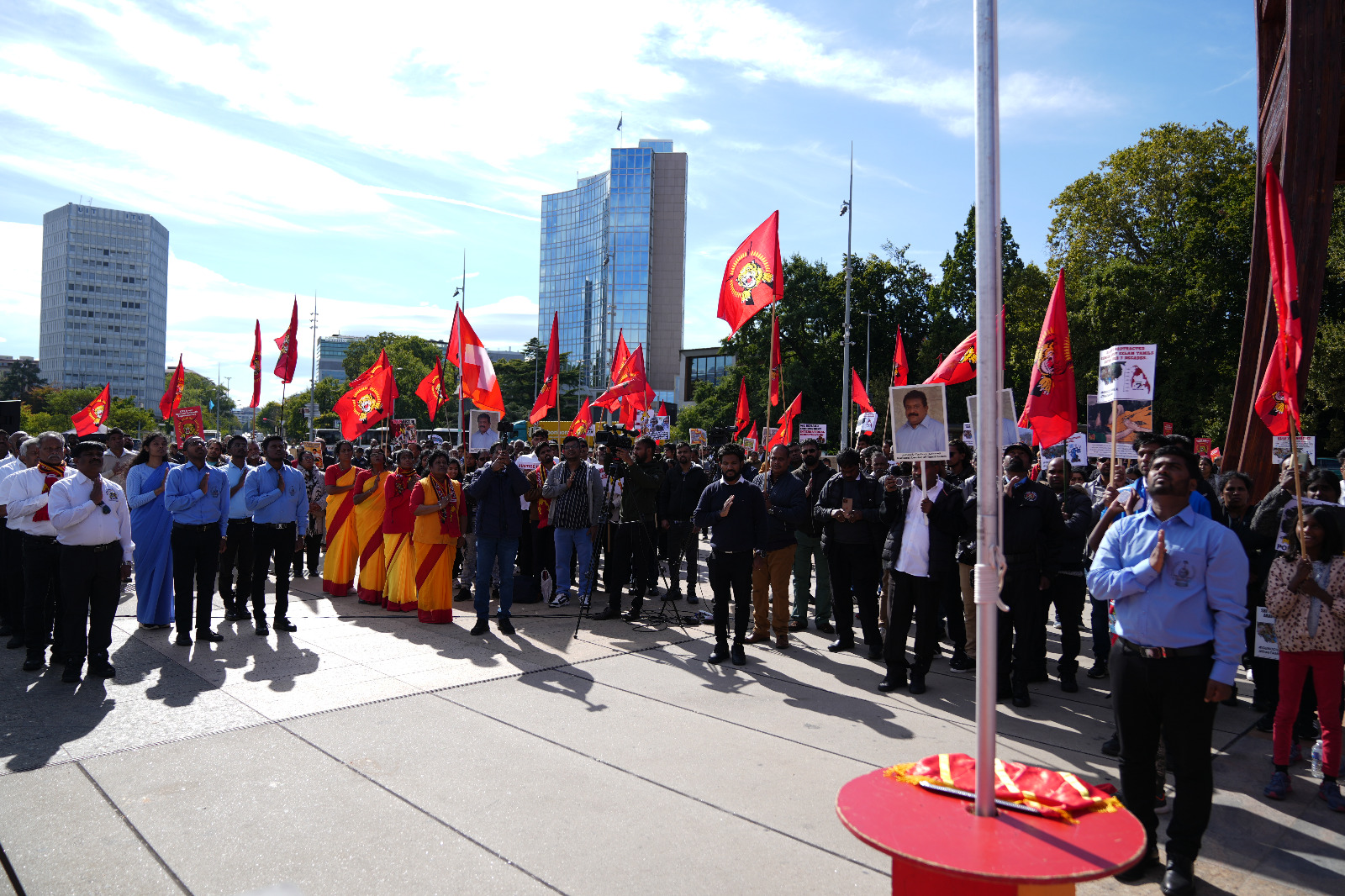 சிங்களப் பேரினவாத அரசினால் முள்ளிவாய்க்காலில் உச்சம் பெற்ற இனவழிப்பின் பதினைந்தாவது ஆண்டிலும் எங்களுக்கான நீதியை எங்களுக்குத் தாருங்கள் என்ற உரிமை முழக்கத்தோடு, சிறிலங்கா அரசபயங்கரவாதத்தினால் தொடர்ச்சியாக தமிழ்மக்கள் மீது மேற்கொள்ளப்பட்டுவரும் இன அழிப்பிற்கு நீதிகேட்டு ஐ.நா முன்றல் ஈகைப்பேரொளி முருகதாசன் திடலில் முன்னெடுக்கப்பட்ட கவனயீர்ப்புப் போராட்டத்தில் நூற்றுக்கணக்கான தமிழ்மக்கள் கலந்துகொண்டிருந்தனர்.