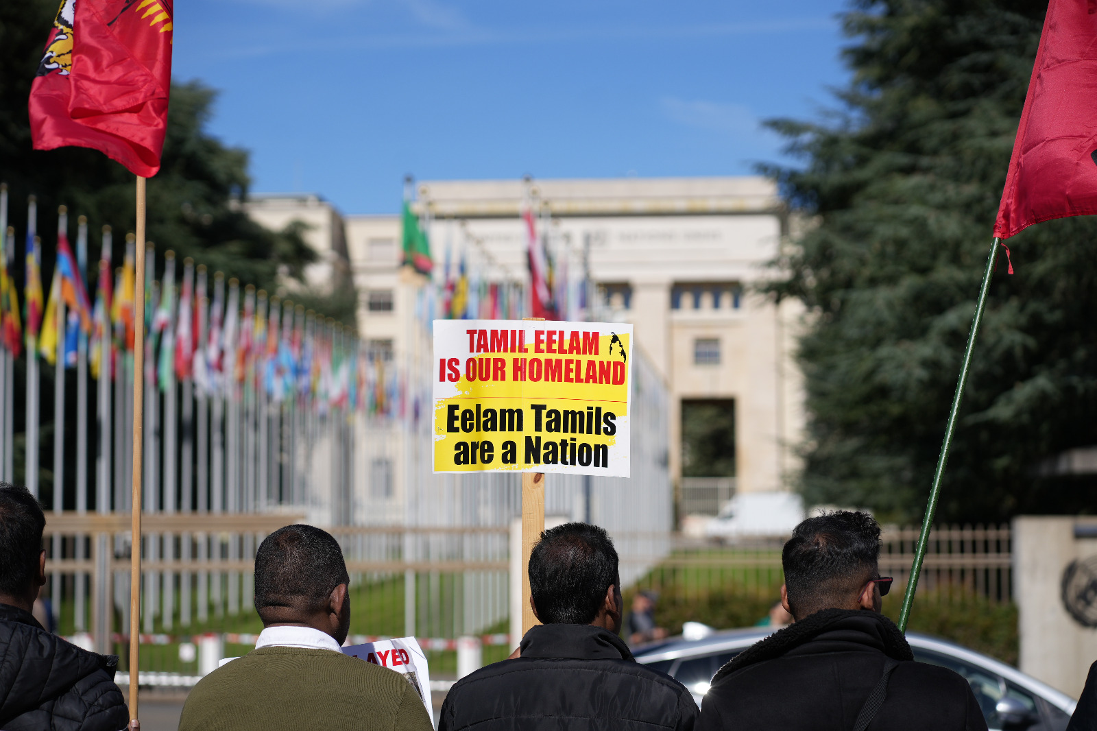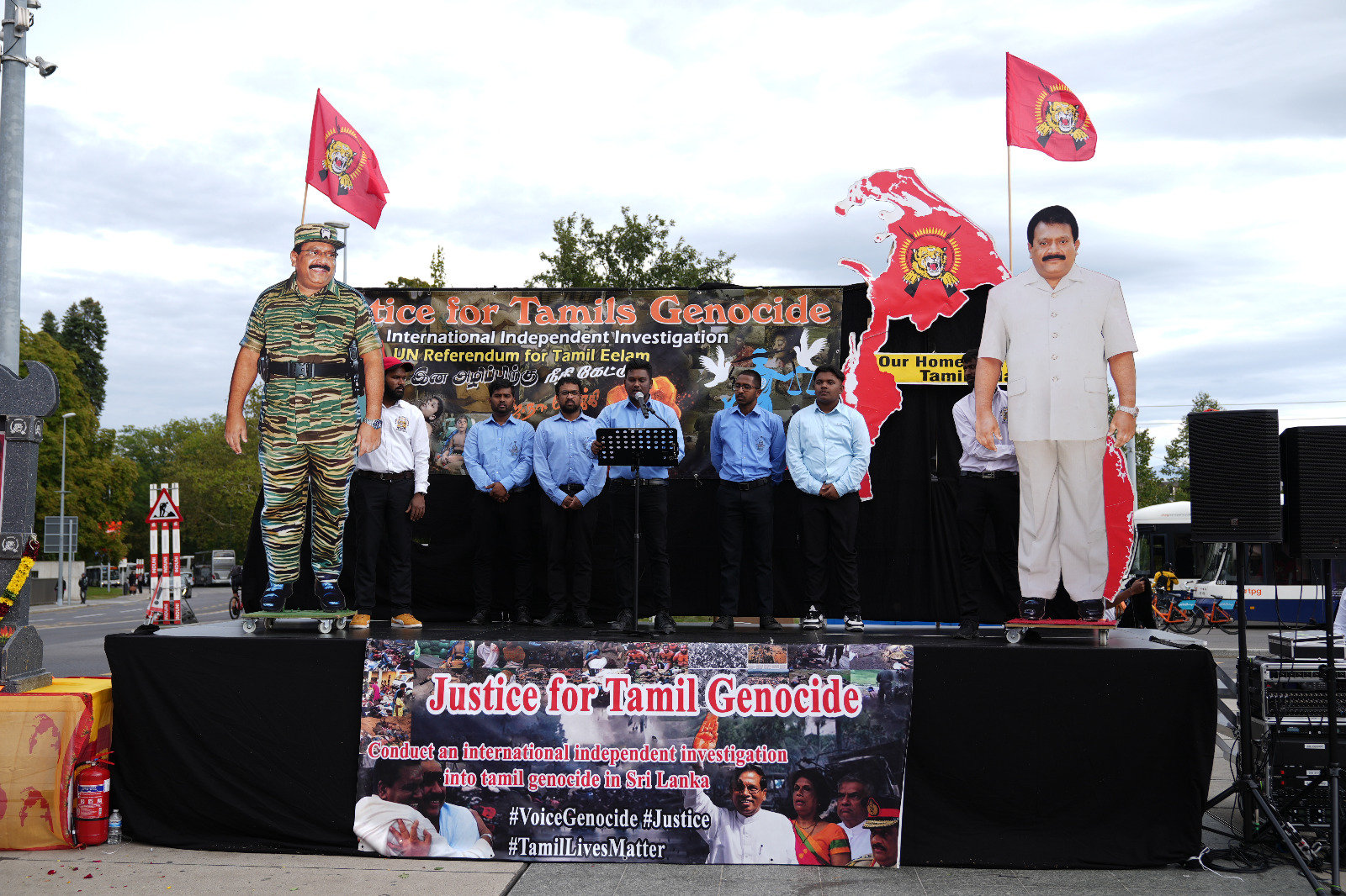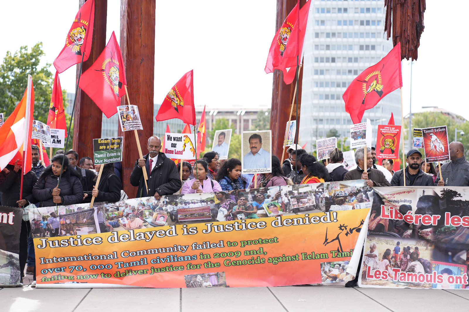 சிங்களப் பேரினவாத அரசினால் முள்ளிவாய்க்காலில் உச்சம் பெற்ற இனவழிப்பின் பதினைந்தாவது ஆண்டிலும் எங்களுக்கான நீதியை எங்களுக்குத் தாருங்கள் என்ற உரிமை முழக்கத்தோடு, சிறிலங்கா அரசபயங்கரவாதத்தினால் தொடர்ச்சியாக தமிழ்மக்கள் மீது மேற்கொள்ளப்பட்டுவரும் இன அழிப்பிற்கு நீதிகேட்டு ஐ.நா முன்றல் ஈகைப்பேரொளி முருகதாசன் திடலில் முன்னெடுக்கப்பட்ட கவனயீர்ப்புப் போராட்டத்தில் நூற்றுக்கணக்கான தமிழ்மக்கள் கலந்துகொண்டிருந்தனர்.