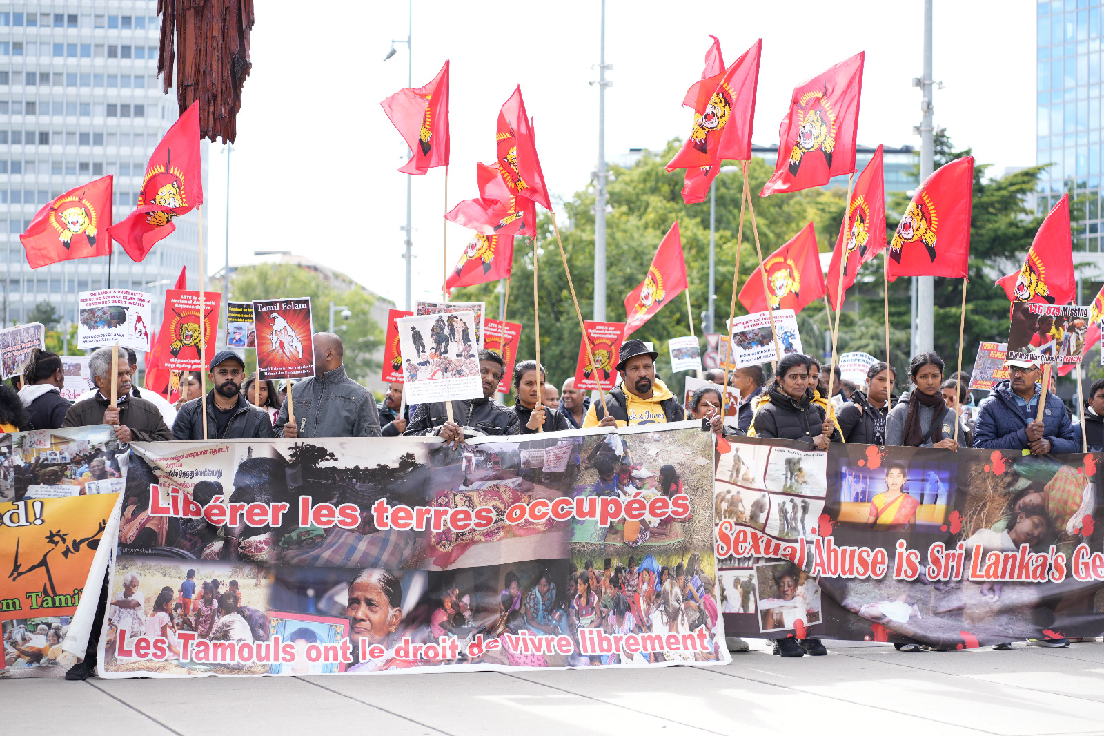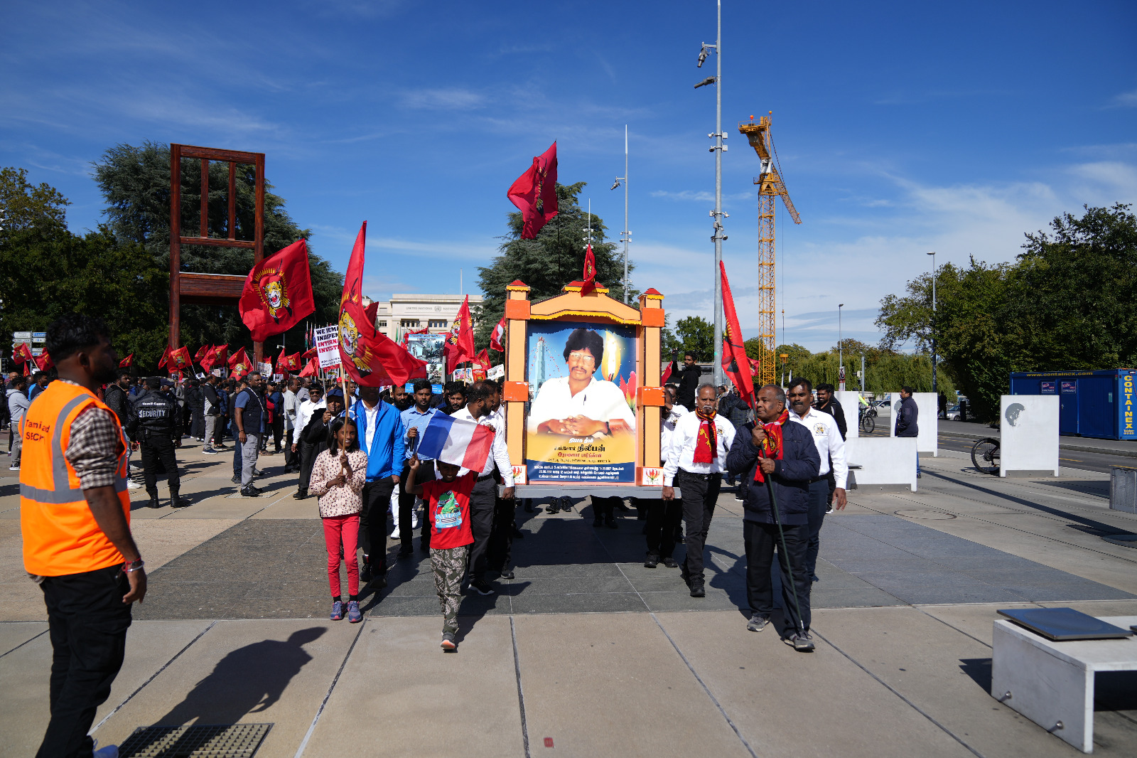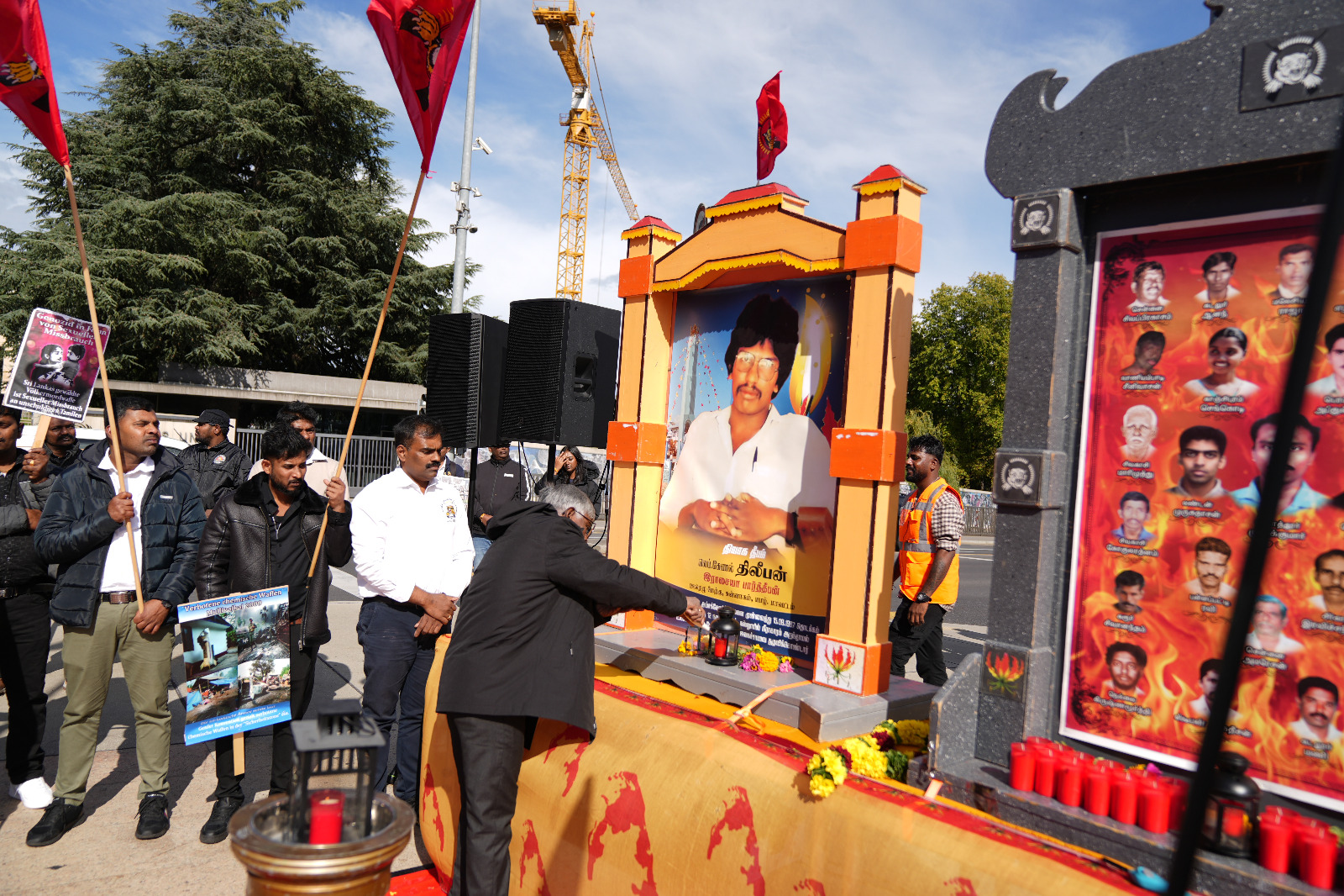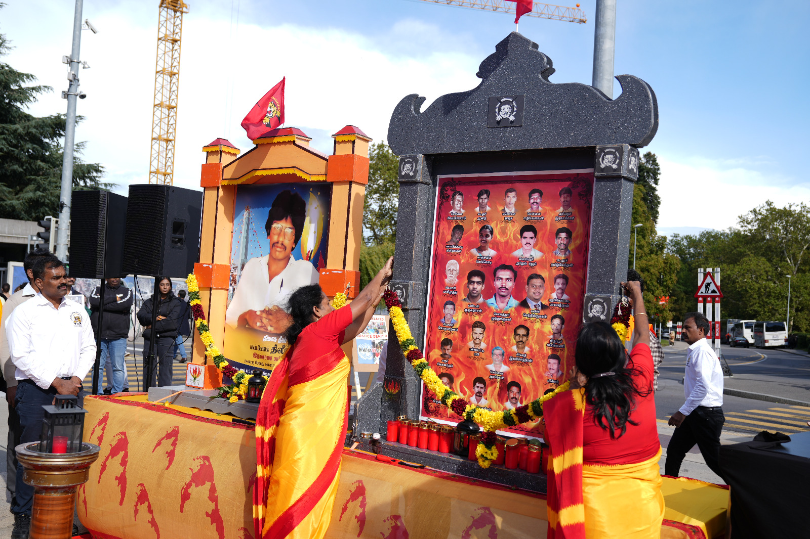 சிங்களப் பேரினவாத அரசினால் முள்ளிவாய்க்காலில் உச்சம் பெற்ற இனவழிப்பின் பதினைந்தாவது ஆண்டிலும் எங்களுக்கான நீதியை எங்களுக்குத் தாருங்கள் என்ற உரிமை முழக்கத்தோடு, சிறிலங்கா அரசபயங்கரவாதத்தினால் தொடர்ச்சியாக தமிழ்மக்கள் மீது மேற்கொள்ளப்பட்டுவரும் இன அழிப்பிற்கு நீதிகேட்டு ஐ.நா முன்றல் ஈகைப்பேரொளி முருகதாசன் திடலில் முன்னெடுக்கப்பட்ட கவனயீர்ப்புப் போராட்டத்தில் நூற்றுக்கணக்கான தமிழ்மக்கள் கலந்துகொண்டிருந்தனர்.